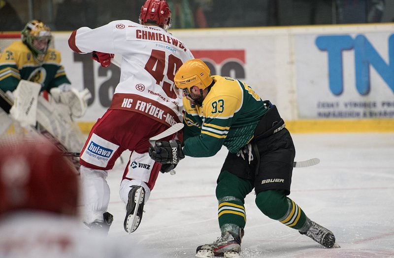 V 7. minutě přišla pro domácí další chladná sprcha. František Zúbek si vysloužil dvě minuty za podražení a Frýdek měl opět příležitost navýšit. Toho také využil. Aron Chmielewski dostal přihrávku od Davida Cienciala a od pravé tyčky dostal kotouč za přemísťujícího se Hromadu. Frýdek ale ještě neměl dost. Neuběhlo ani půl minuty a kotouč přistál na holi Davida Klimši, který se dostal před Hromadu, který nebyl nijak bráněný, a blafákem poslal kotouč do horní části branky.