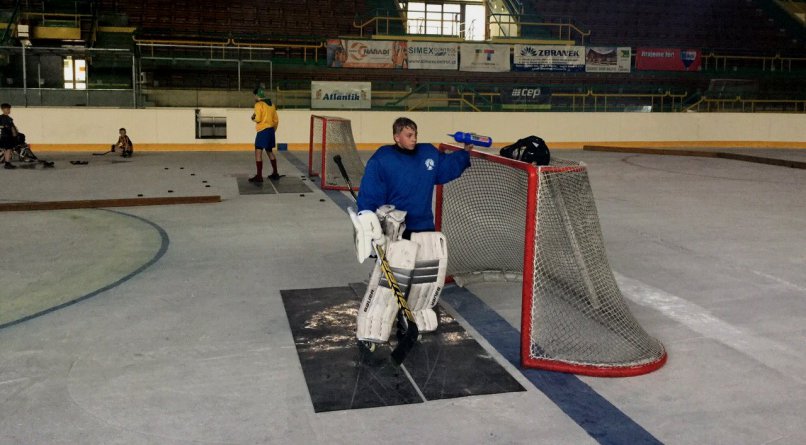 Brankářům přišel své zkušenosti předávat také brankář vsetínského A-týmu Petr Hromada.