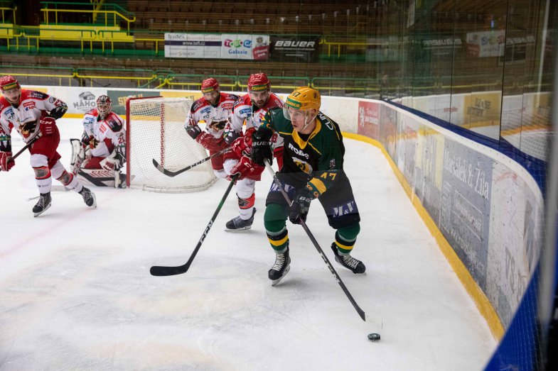 Branky a nahrávky: 17. Zeman (Pechanec, Gorčík), 22. Zeman (Bartko, Pechanec), 40. Půček (Vlach, Kucharczyk), 45. Gorčík (Vlach, Bartko), 46. Gorčík (Březina, Štach) – 39. Žálčík (Mrázek, Drtil). Rozhodčí: Cabák, Květoň – Vašíček, Komínek. Vyloučení: 6:4. Využití: 2:1. V oslabení: 0:0. Diváci: 0. Střely na branku: 30:39. Průběh utkání: 2:0, 2:1, 3:1, 4:1, 5:1.