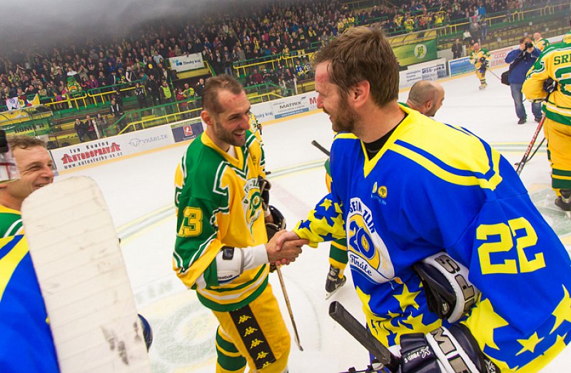 Po střechu nabitý Lapač se nenudil ani ve třetině třetí. Dočkal se dvou vyloučení – Sedlák a Tomek - a dalších čtyř gólů. Nejprve to byli Ševci, kdo dvěma zásahy obrátil skóre. Ve 36. minutě zakončil ukázkový ťukes Tomáš Němčický a čtyři minuty po něm se znovu prosadil nejproduktivnější účastník exhibice Miroslav Okál. Hostující sen o přepsání dějin ale v samém závěru vzal za své. Řízný bek Jan Srdínko totiž zblízka zakončil dobrou práci Martina Smetáka a vyrovnal na 5:5.